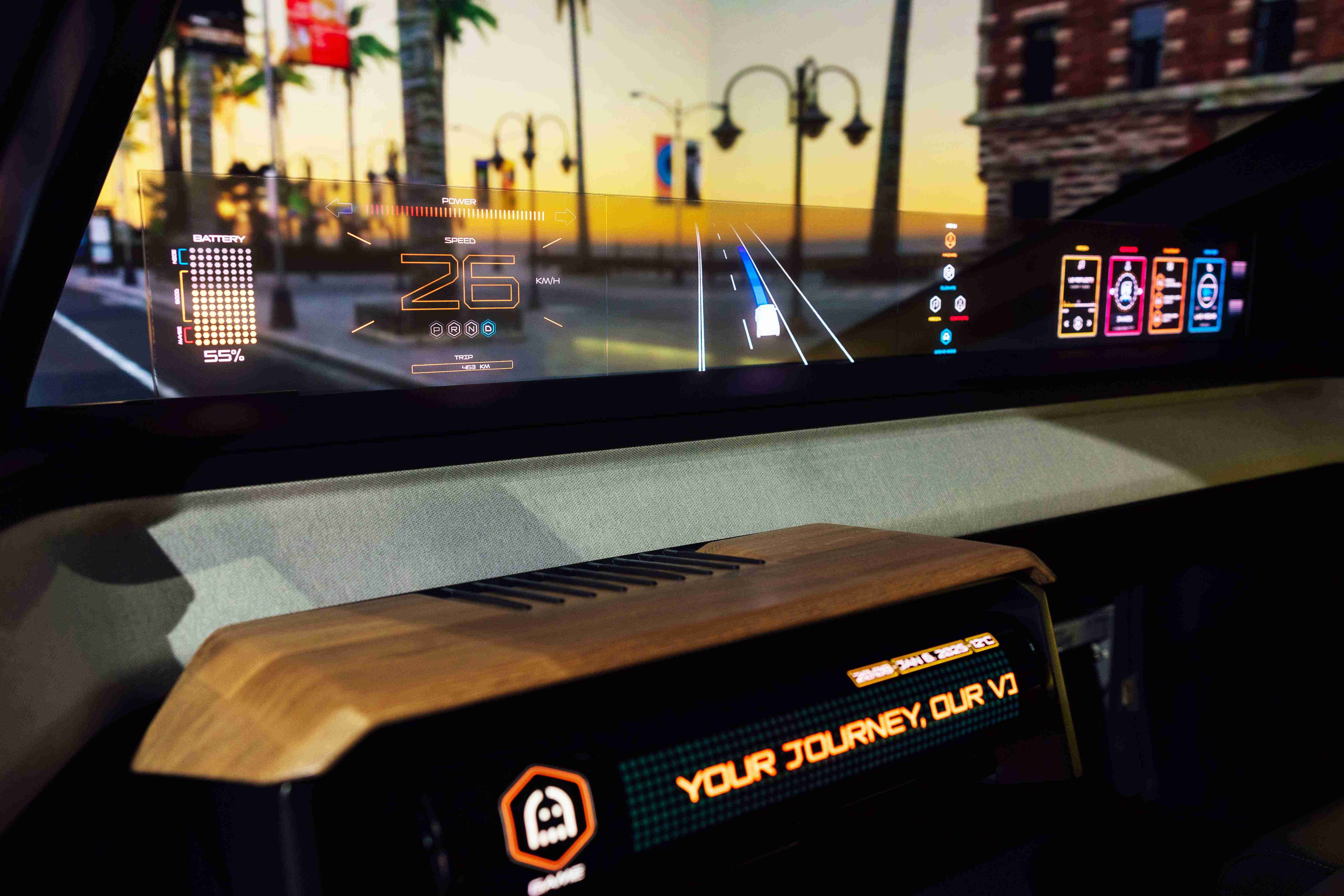 幻境全景天幕(Virtual Sky Canopy)将无缝拼接大型化的透明Micro LED显示器融入至天窗,,,带来沉浸式体验,,,将人机介面扩展至整个座舱。。