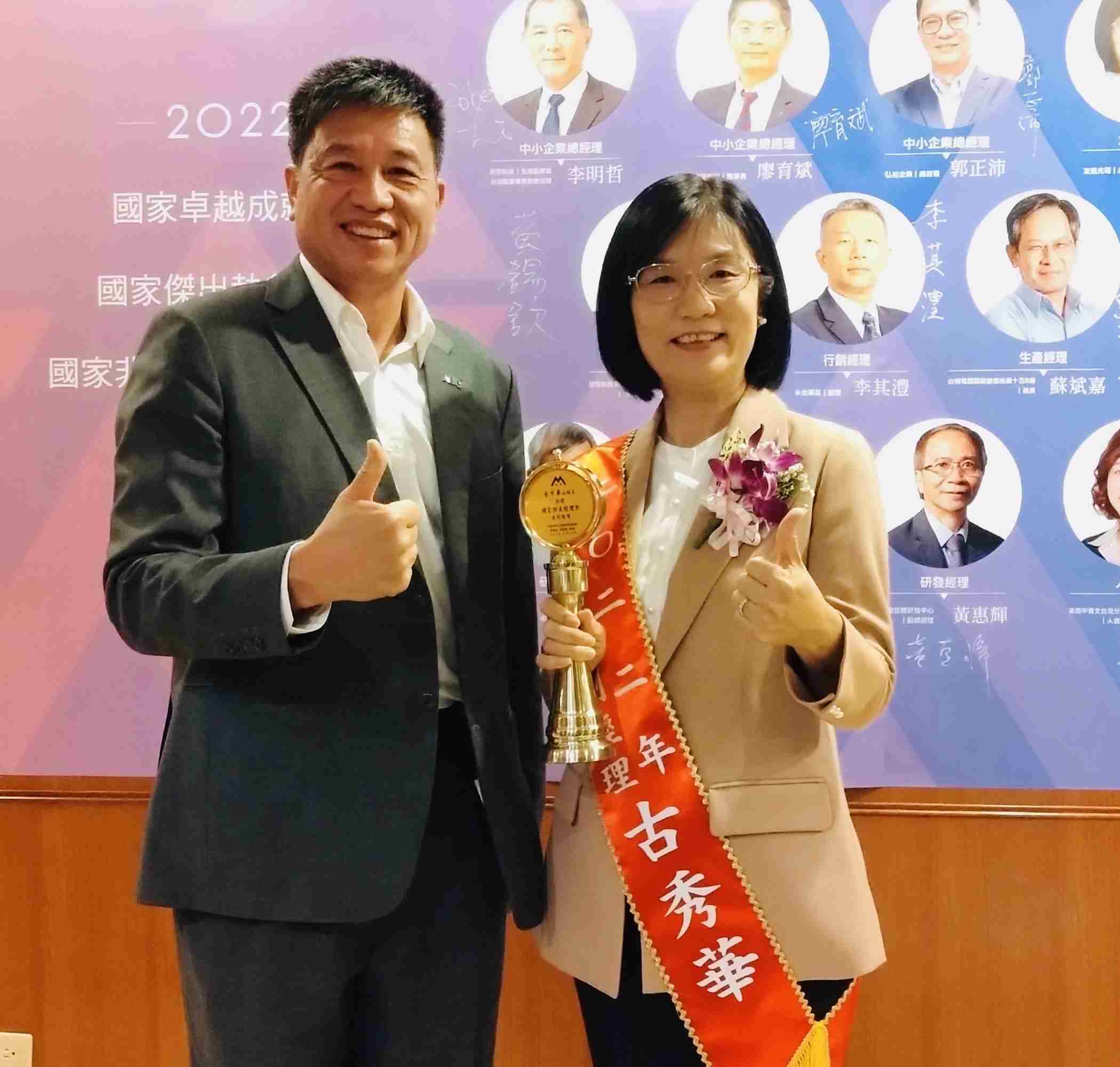 古永续长对企业永续发展的付出与杰出表现,,,,接连获得2020亚洲顶尖永续超级女性️以及2022亚太顶尖永续长奖,,,,这次更得到中华民国企业经理协进会第40届「国家杰出经理奖」。。。️ 「从一而终,,,砥砺自己跨域学习、、、勇于面对多元挑战。。」在全球ESG和低碳转型浪潮下,,古秀华带领团队贡献所学,,,一路协助公司转型成长。。。 肯定其对企业永续发展领域的投注心力及杰出贡献