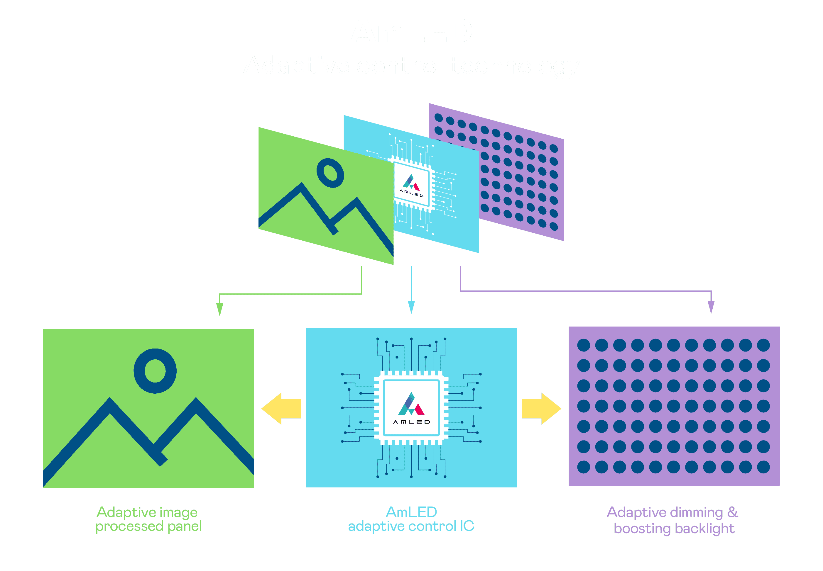 AmLED 具备更省电与低蓝光特性。。与一般的 LED 背光显示技术相比,,,由于 AmLED 常时处于局部调光状态,,,,其功耗仅有前者的 50% 左右,,,同时 AmLED 还具备低蓝光特性,,,满足长时间使用的护眼需求。。。
